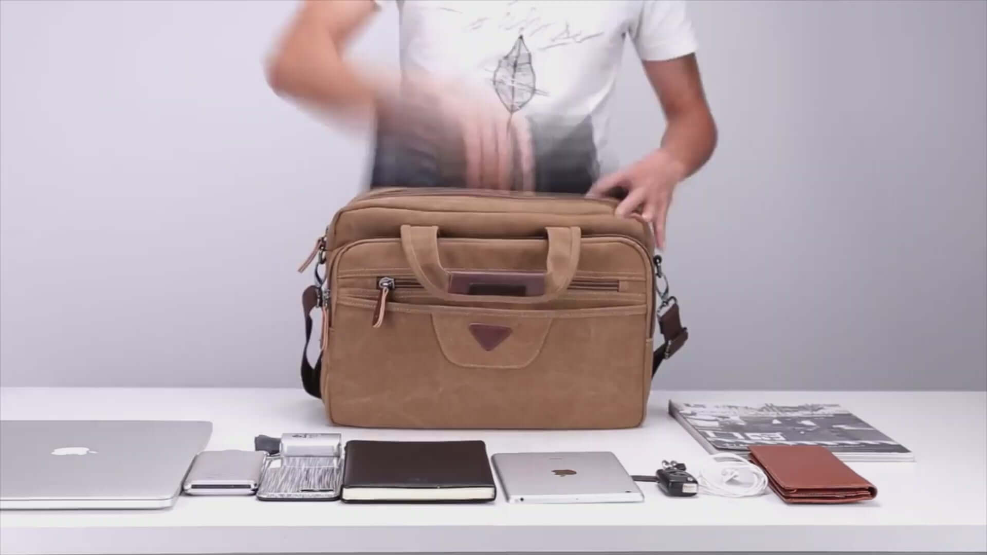 Elevate your professional look with our men's canvas laptop briefcase. Crafted from washed canvas and PU leather, this briefcase offers a casual style while providing ample storage for your daily work essentials. The multiple zippered compartments ensure efficient organization, and the bag can be carried by hand, over the shoulder, or crossbody. Embrace the blend of style and functionality in your work routine.