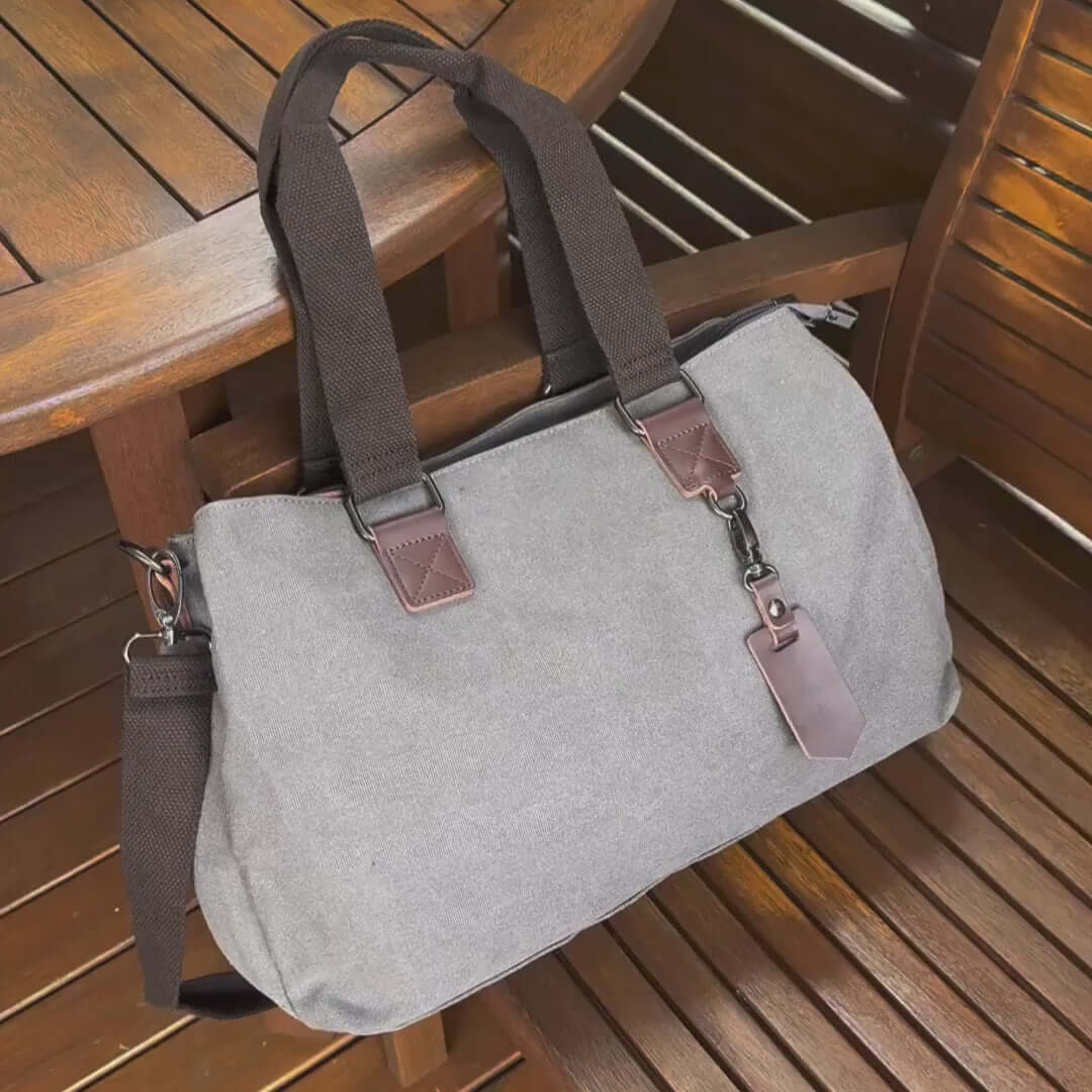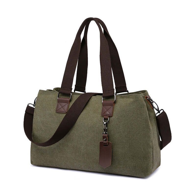 Canvas Shoulder Tote Bag | Three Zippered Main Compartments