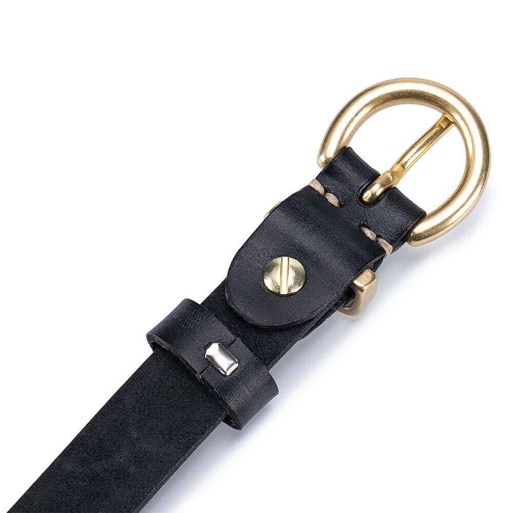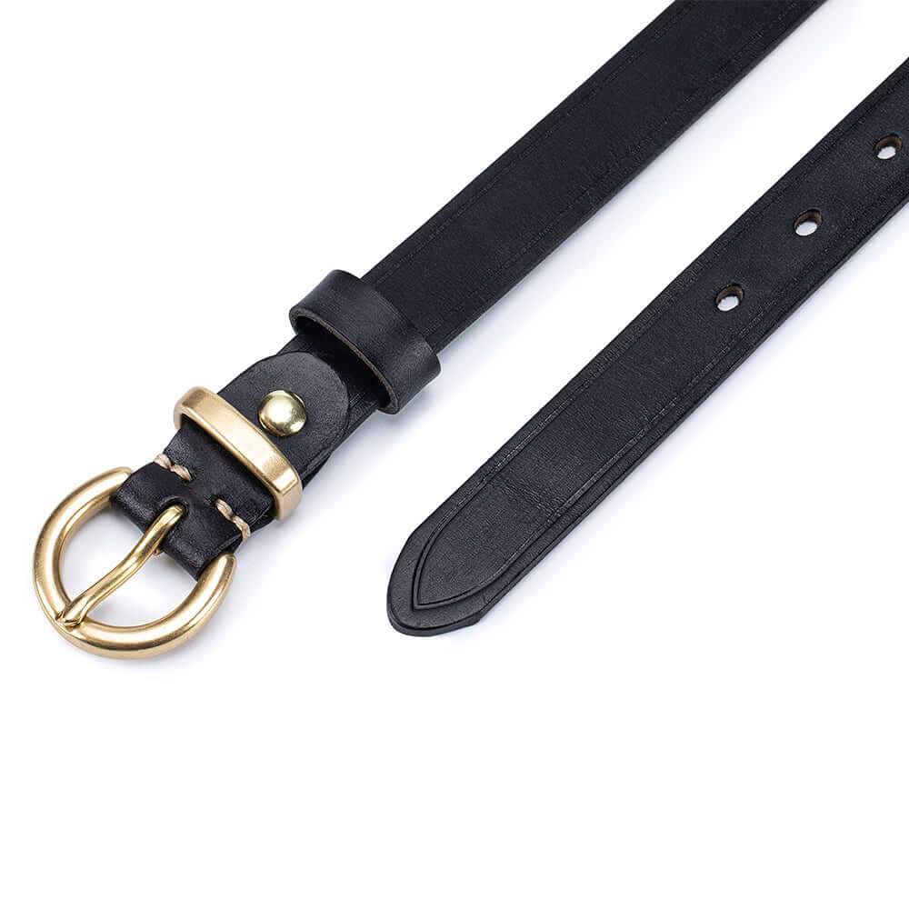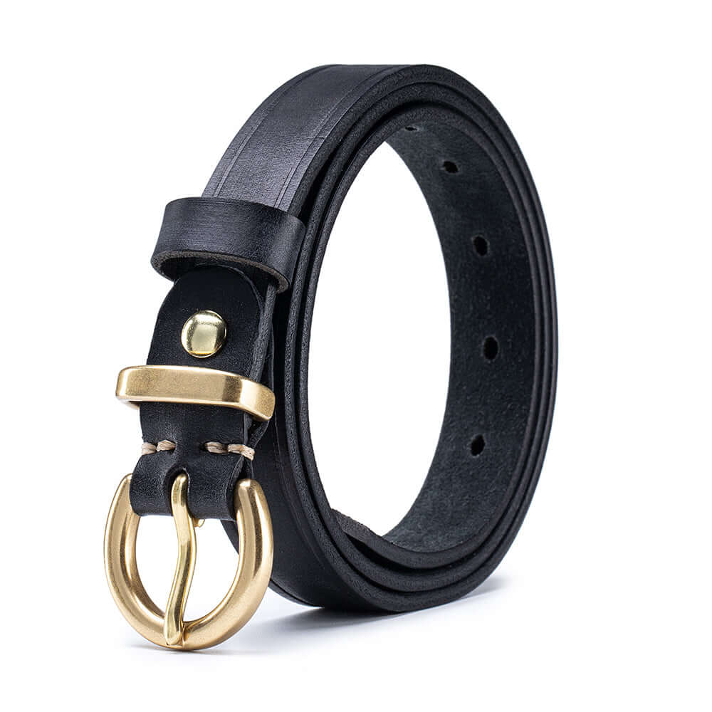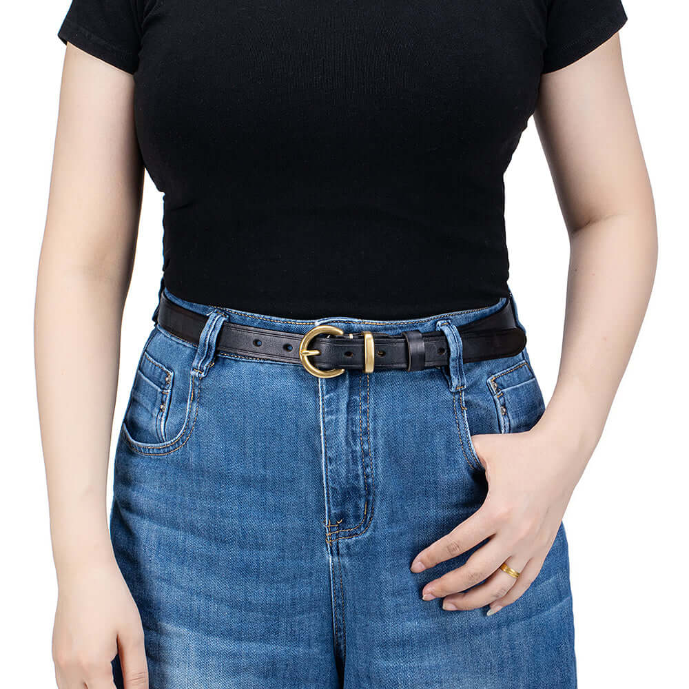 Crafted from premium vegetable-tanned full-grain leather, this women’s genuine leather belt features a timeless antique gold buckle and classic pin-hole design. Durable, stylish and easy to adjust, it’s the perfect everyday belt for jeans, dresses or trousers.
