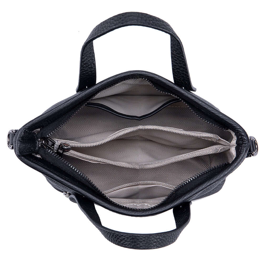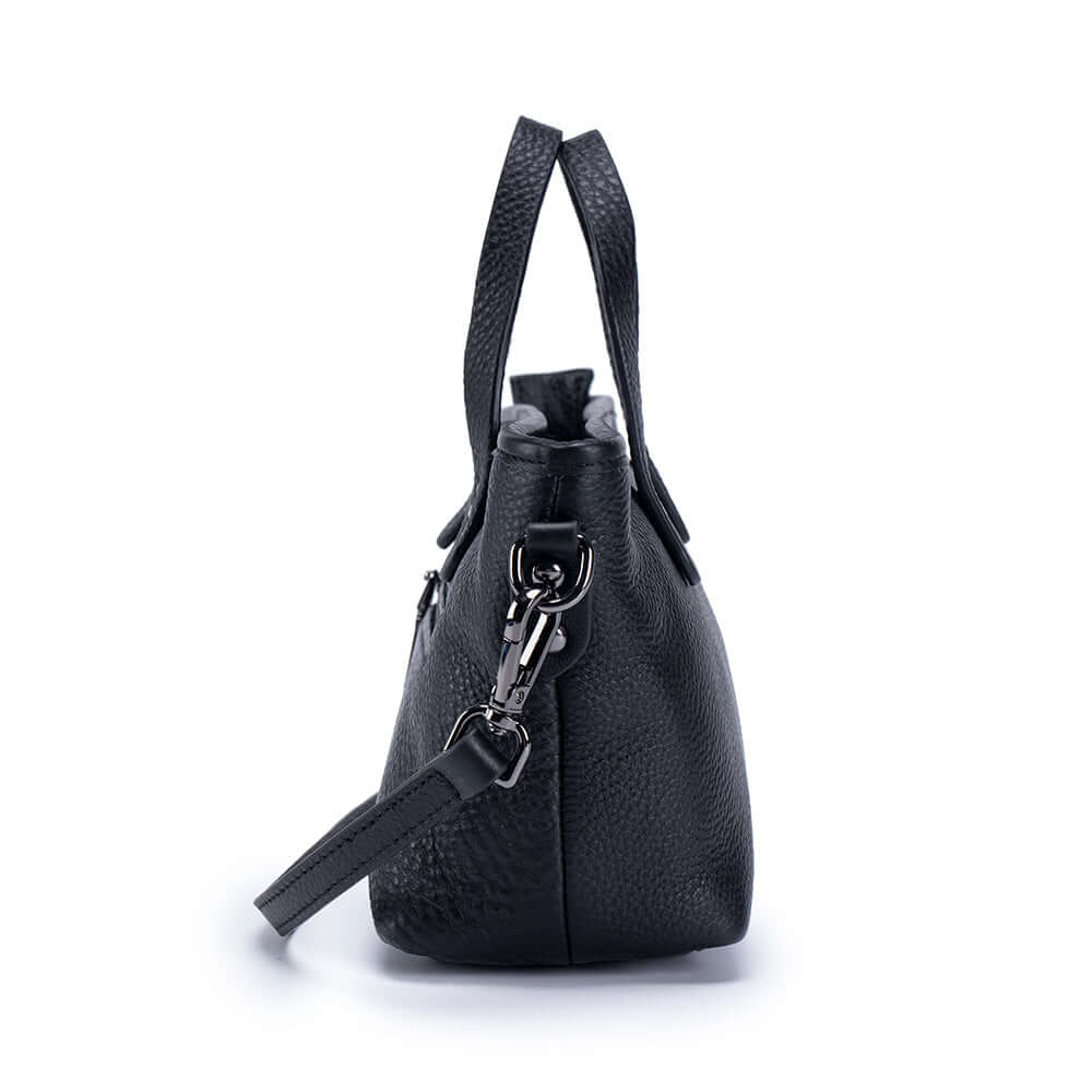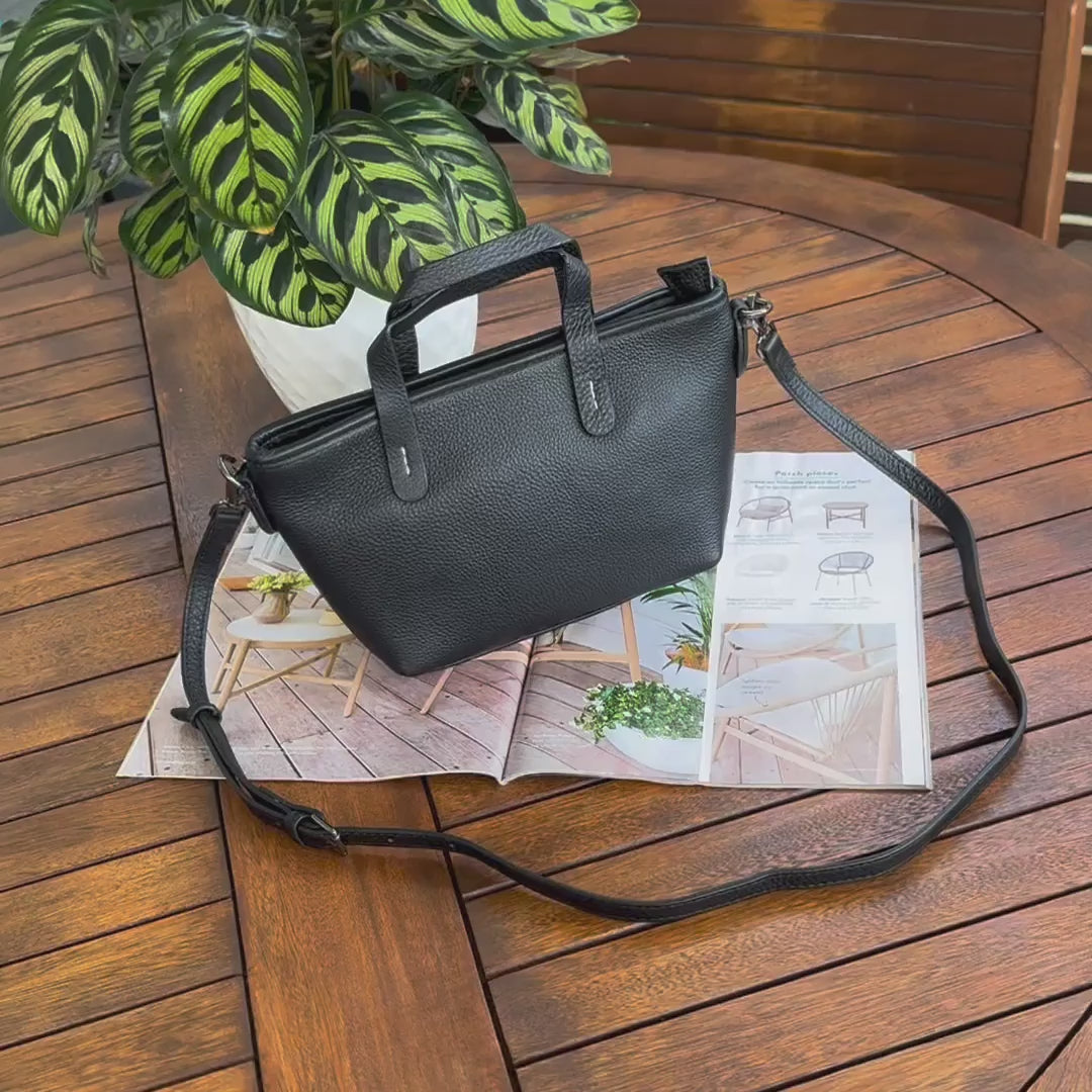 A compact genuine leather handbag designed for everyday use. Lightweight and versatile, it can be carried by hand, on the shoulder, or as a crossbody bag.
