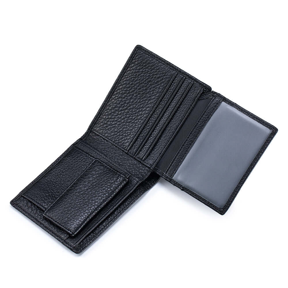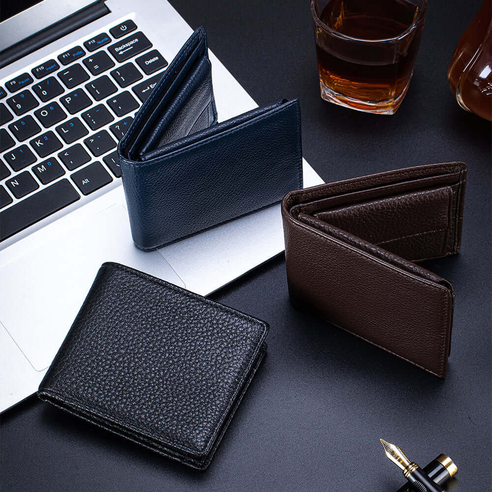 Crafted from genuine leather, this men’s RFID short wallet combines classic style with practical storage. Designed with multiple card slots, ID windows and a secure coin pocket, it keeps everyday essentials organised while protecting your cards with RFID blocking technology. Slim, lightweight and durable, it’s an ideal everyday wallet for modern men.