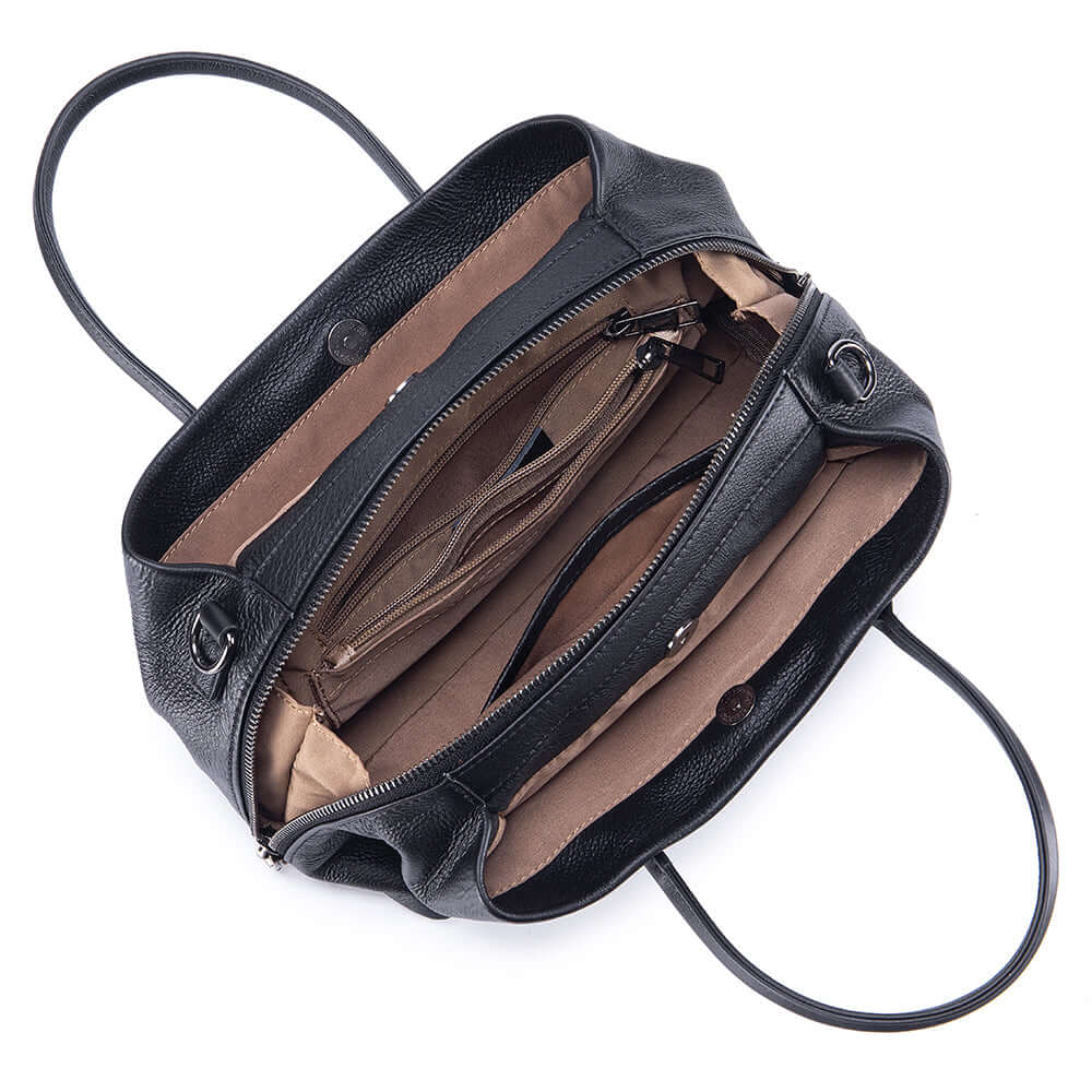 This elegant women’s handbag is crafted from soft genuine leather, combining style and practicality for everyday use. Designed with a structured yet flexible shape, it offers multiple compartments to keep your essentials organised. The bag can be carried by hand, worn on the shoulder, or used as a crossbody bag with the adjustable strap, making it a versatile choice for work, shopping, or daily outings.