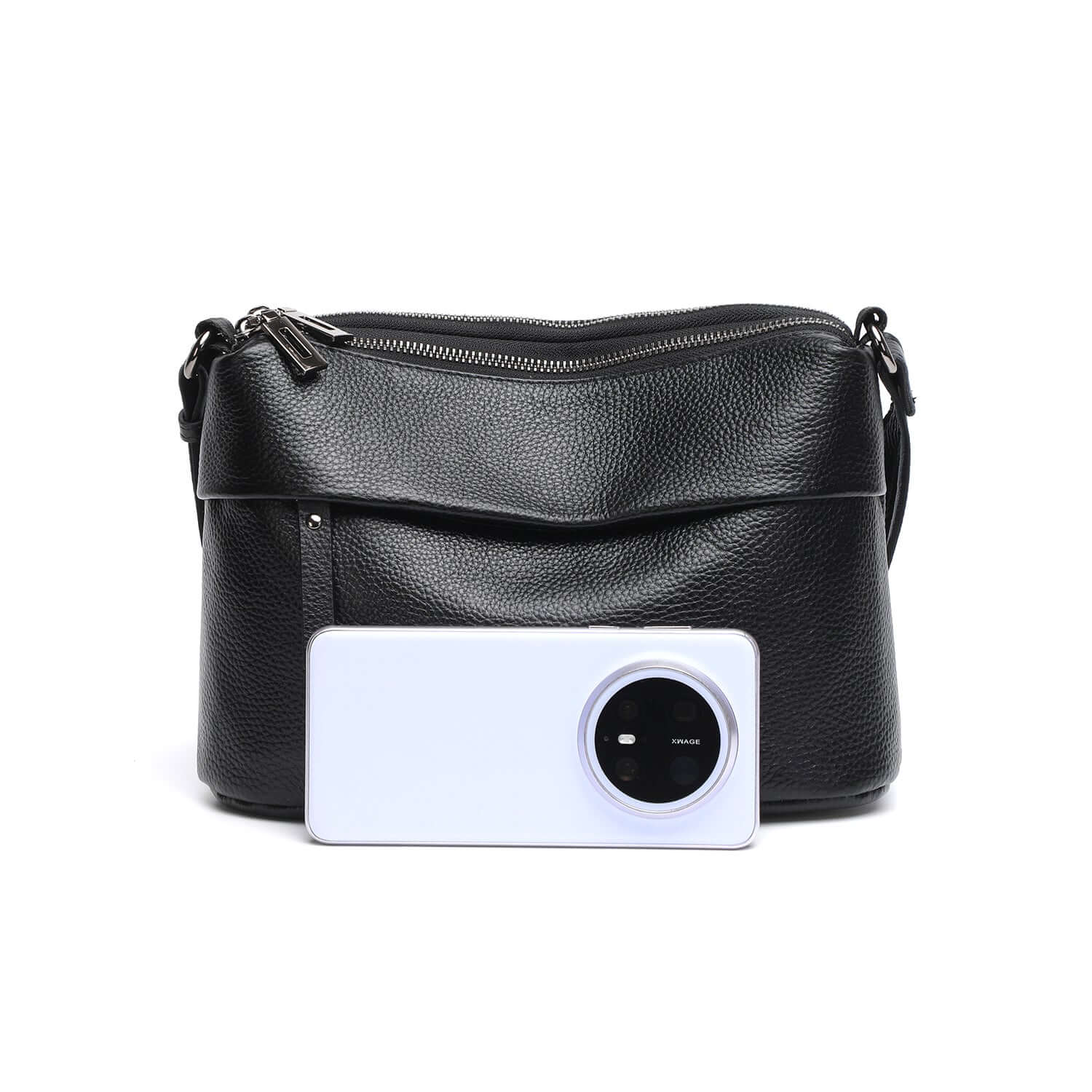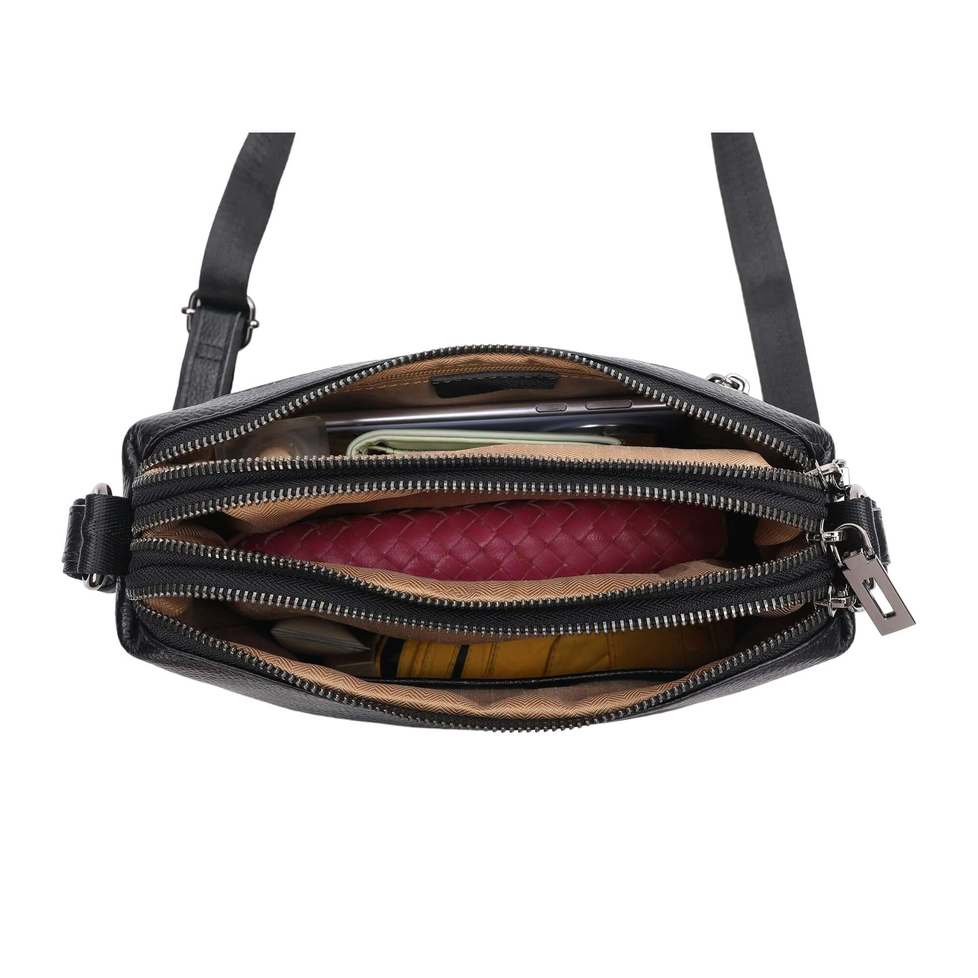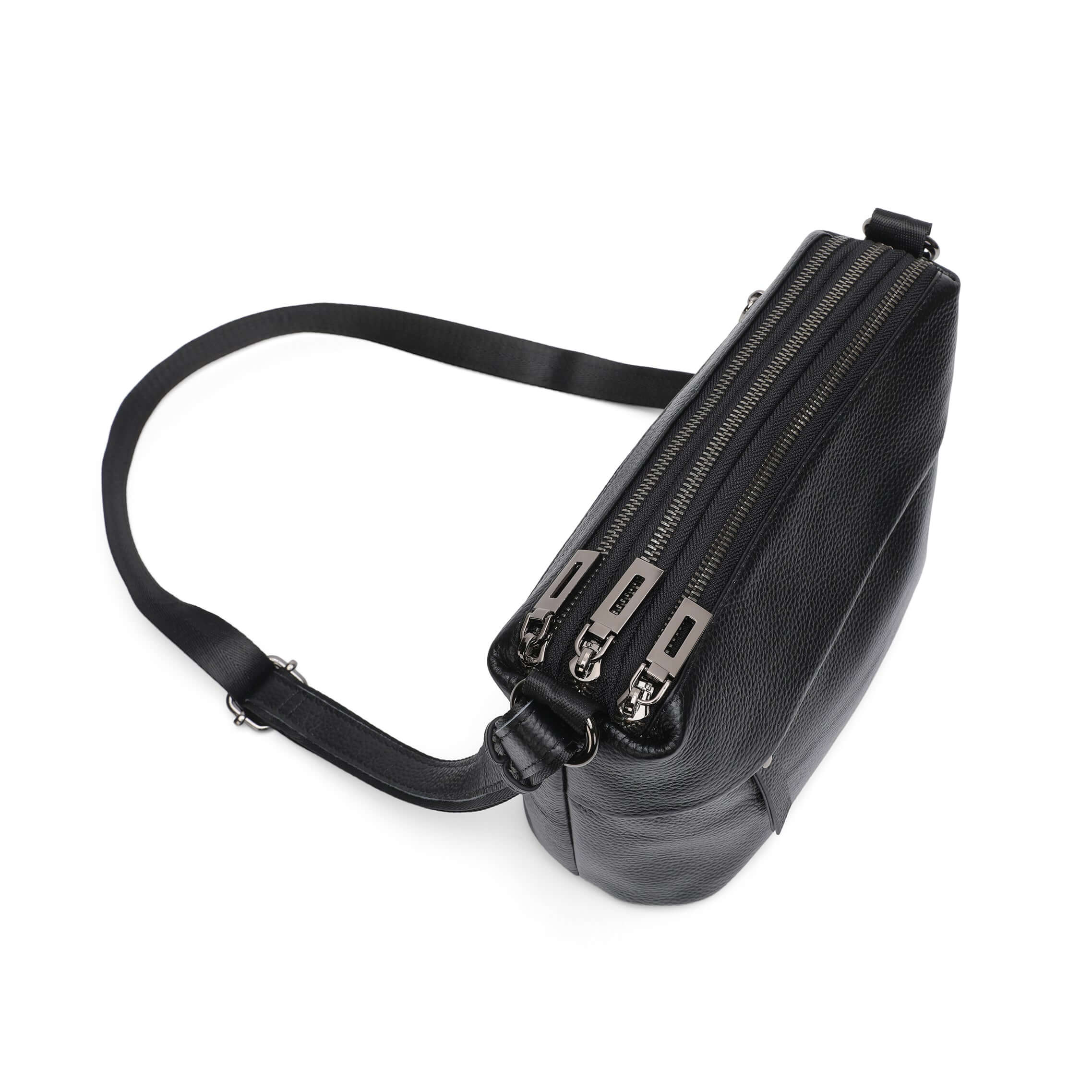 Leather Multi-Compartment Crossbody Shoulder Bag