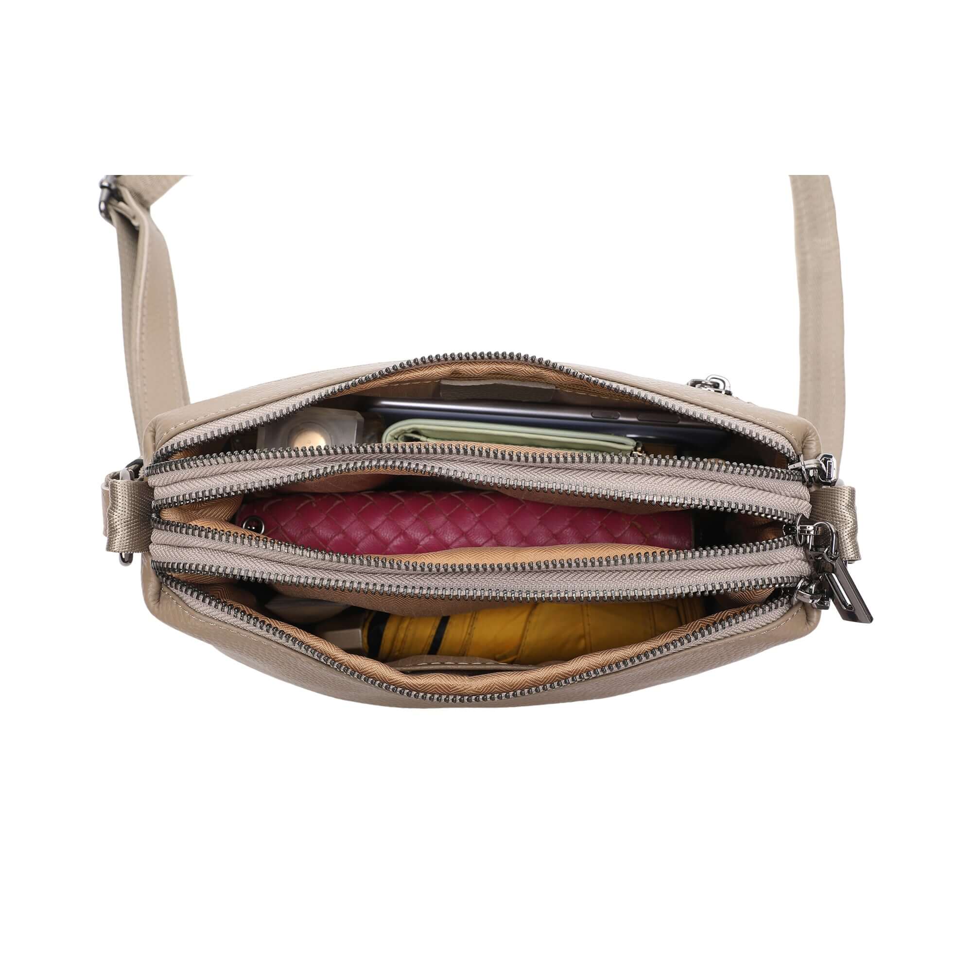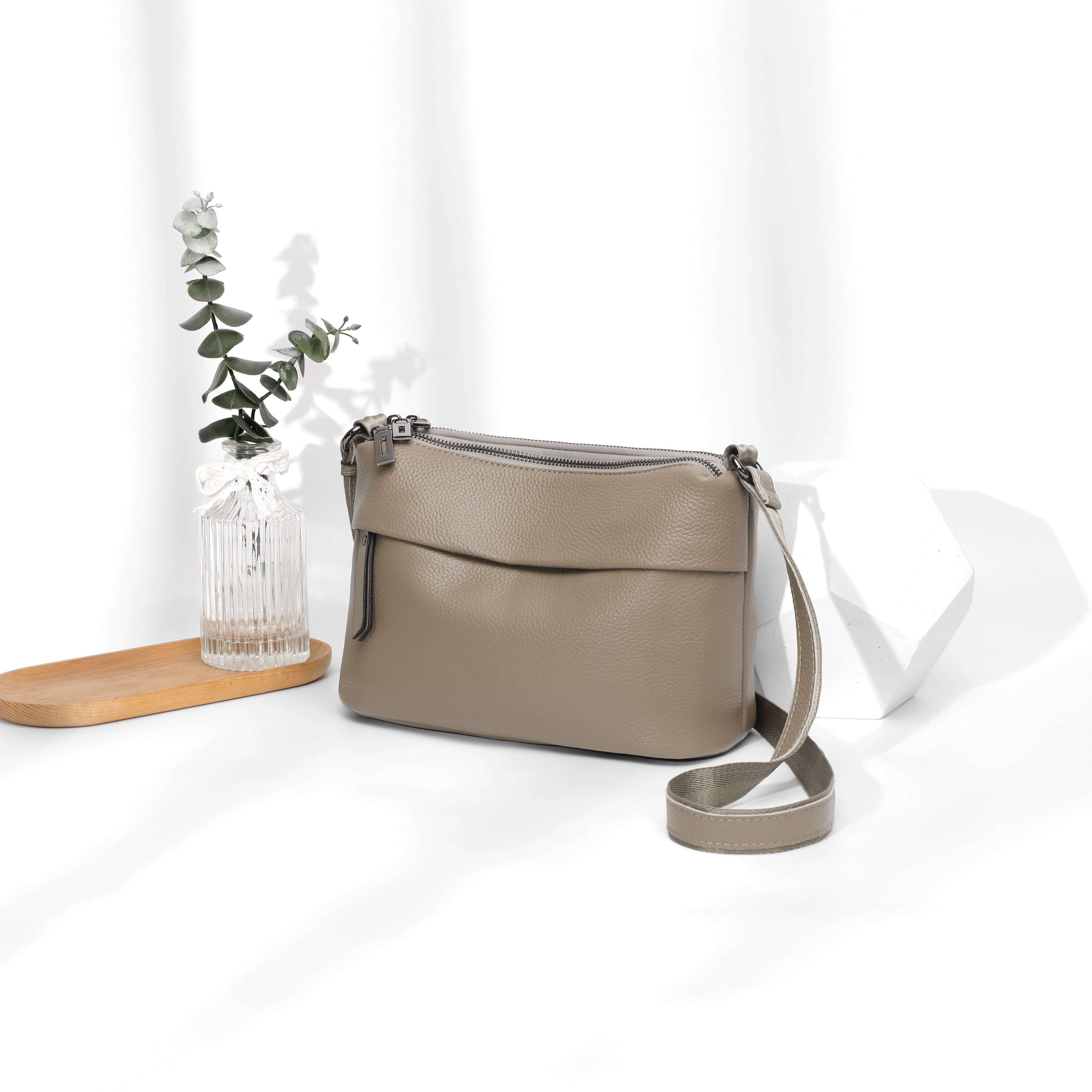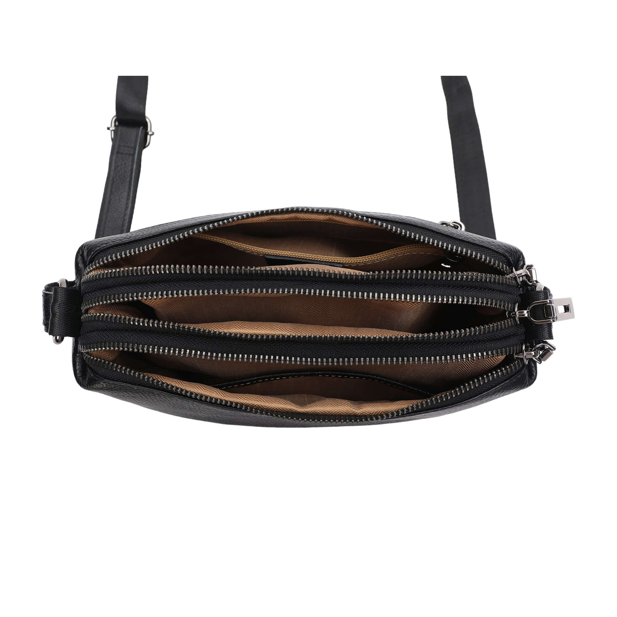 Leather Multi-Compartment Crossbody Shoulder Bag